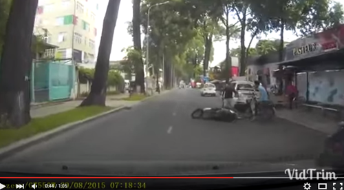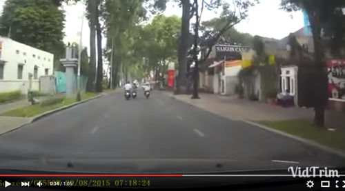 Camera hành trình gắng trên ô tô đã ghi lại được cảnh hai tên cướp liều lĩnh trên đường. 2 đối tượng đi xe Luvias FI màu trắng BKS: 59 L1_60707 đi phía sau xác định con mồi trước khi ra tay cực nhanh, làm cô gái đi xe tay ga ngã nhào ra đường cực nguy hiểm, sự việc xảy ra trên đường Pasteur, Quận 1 TP.HCM.