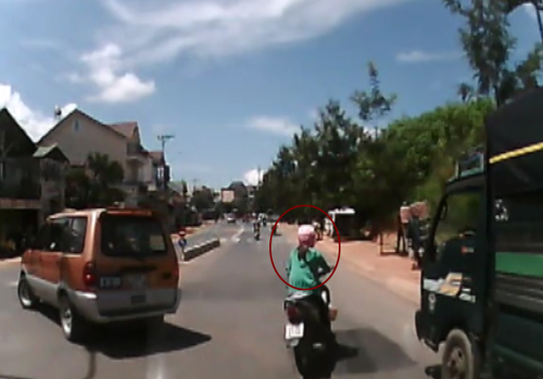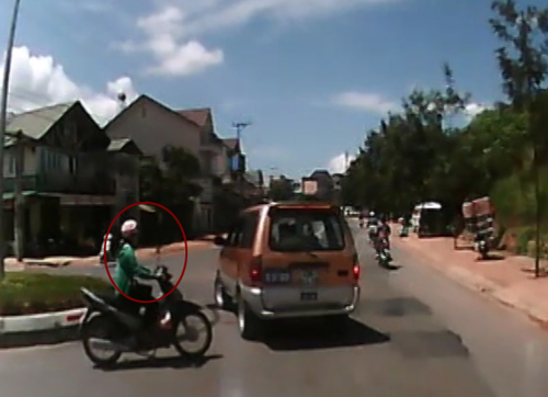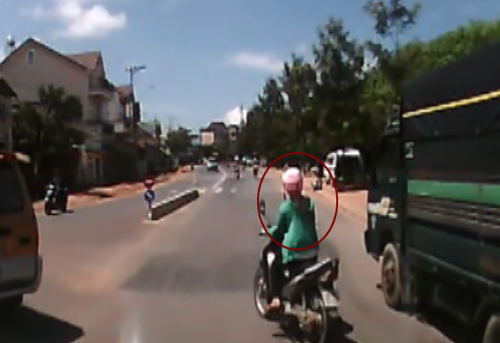 Cô gái cắt mặt ôtô camera hành trình và không quan sát bên phải.