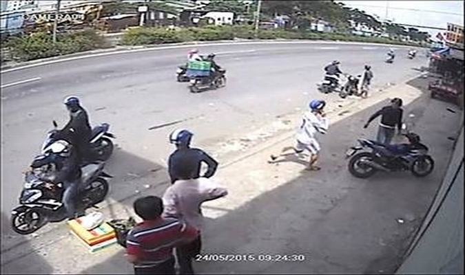 Một nhóm khoảng 5-6 kẻ bịt mặt nhắm vào một thanh niên áo trắng đi xe Exciter, vài người trong nhóm vờ hỏi đường để đánh lạc hướng. Thừa lúc thanh niên kia mải chỉ đường, 1 kẻ trong nhóm đã tới phá khóa xe, rất may người thanh niên đã kịp phát hiện. Nhóm “đạo tặc” bình tĩnh lặng lẽ rời đi.