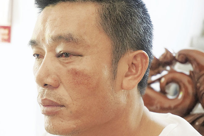 Vết thương trên mặt anh Lâm do bị hành hung.