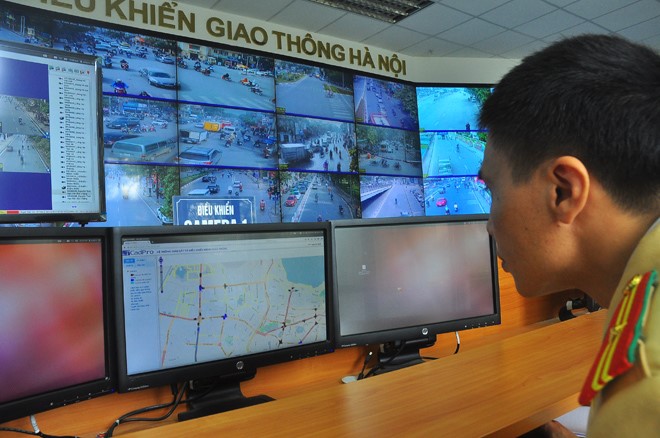Trung tá Huỳnh Tấn Nam – Đội trưởng Đội trưởng Đội Chỉ huy giao thông và điều khiển đèn tín hiệu giao thông cho biết, hiện Trung tâm ĐKĐTHGT của PC67 ghi nhận hình ảnh từ hơn 450 camera giám sát được lặp đặt khắp các tuyến giao thông ở Hà Nội.