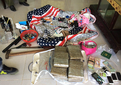 Khám nhà Bảo, nhà chức trách thu thêm 14 bánh cần sa khô (tổng trọng lượng gần 14kg); 3 gói heroin; 3 gói nilon ma túy đá cùng roi điện, kiếm, súng ngắn giả và một số dụng cụ dùng để sử dụng ma túy.