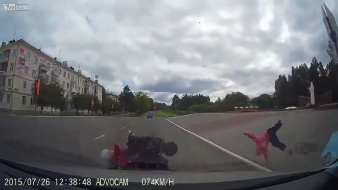 Vụ tai nạn xảy ra tại Nga vào ngày 26/7 vừa qua. Đoạn video cho thấy, một chiếc ôtô di chuyển với tốc độ cao đã tông trực diện vào xe nôi em bé do bố mẹ đang đẩy qua đường. Cú đâm khiến em bé bị hất văng xa khỏi nôi.