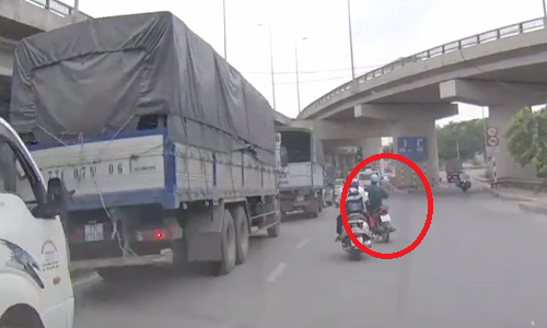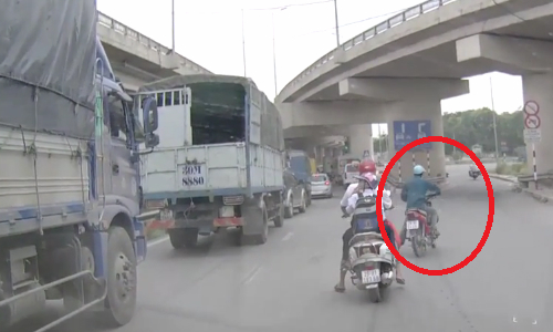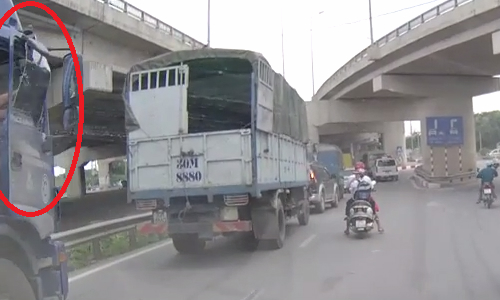 Trưa ngày 1/9, tại ngã ba Pháp Vân, Hà Nội, Camera hành trình ghi lại cảnh một thanh niên đi xe máy bất ngờ áp sát ôtô tải đang dừng bên đường, ném đá thẳng vào kính phụ rồi bỏ chạy. Sự cố khiến xe tải bị vỡ kính phụ.