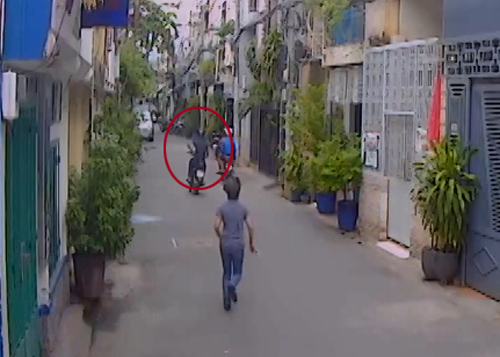 Vụ cướp xảy ra mới đây tại một con hẻm ở khu phố 8, quận Phú Nhuận, TP HCM. Hình ảnh cắt từ video camera giám sát tại khu phố.