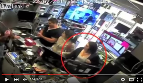 Người phụ nữ này đã nhanh tay cầm chiếc iPad giấu vào trong người khi nhân viên bán hàng đang mải trao đổi với khách. Ngay lập tức cô ta bị nhân viên cửa hàng bắt quả tang và phải ngậm ngùi trả lại chiếc iPad về vị trí cũ.