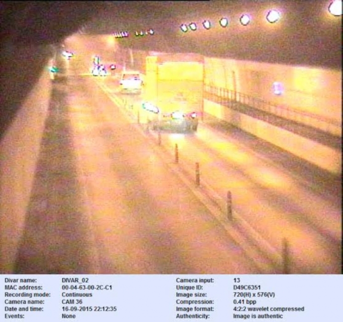 Hình ảnh chiếc xe tải bốc cháy trong hầm đường bộ Hải Vân từ hệ thống camera