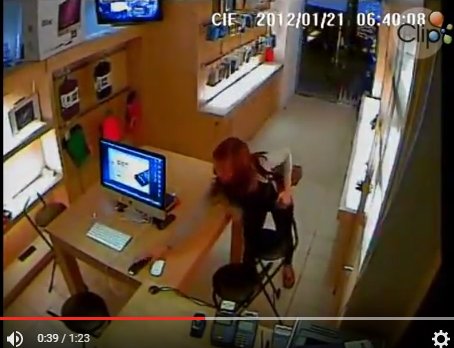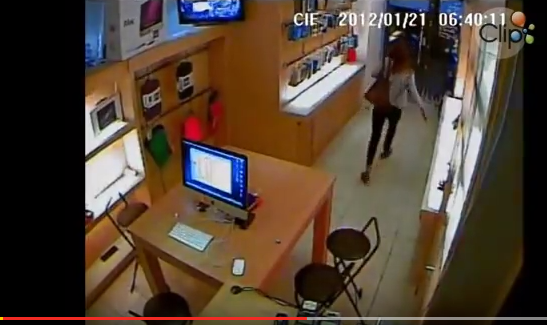 Đoạn video được camera giám sát tại cửa hàng ghi lại, hình ảnh cô gái lấy đi chiếc Iphone chỉ trong một khoảng thời gian ngắn ngủi mà các thành viên trong cửa hàng không ai hay.