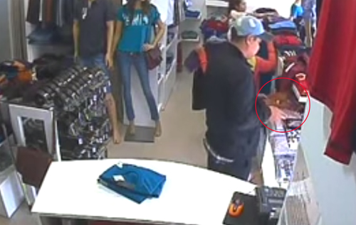 Những kẻ đạo chích phối hợp với nhau rất nhịp nhàng, khiến cô nhân viên không hề biết chuyện gì xảy ra. Tuy nhiên vụ trộm đã được Camera của cửa hàng ghi lại.