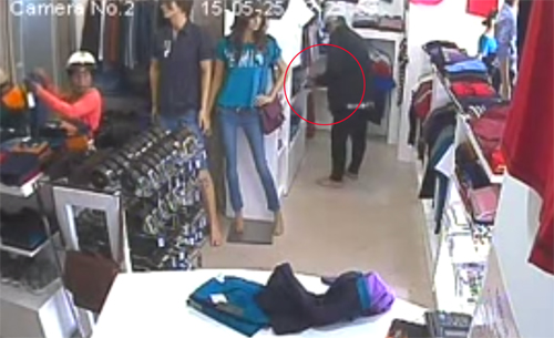 3 người gồm 2 nữ một nam bước vào quán dàn cảnh trộm quần áo rất chuyên nghiệp. 2 người phụ nữ liên tục chỉ đồ hỏi giá khiến nhân viên không kịp xoay xở. Nhân lúc đó, người đàn ông nhanh tay cuộn quần áo trên kệ bỏ vào trong áo khoác, rồi chọn một chiếc áo thun vào phòng thử đồ nhằm chỉnh trang lại quần áo.