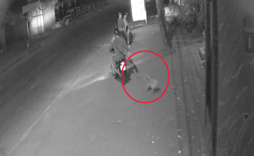 Con chó chạy thẳng xuống dưới thì bị 2 tên đi xe máy phía sau đón đầu.