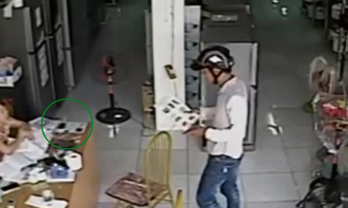 Tên đạo chích giả vờ làm nhân viên tiếp thị, cầm tờ giấy đặt lên chiếc điện thoại trên bàn, giới thiệu sản phẩm nhưng cô gái không mua. Hắn bỏ đi thì chiếc điện thoại cũng không cánh mà bay.