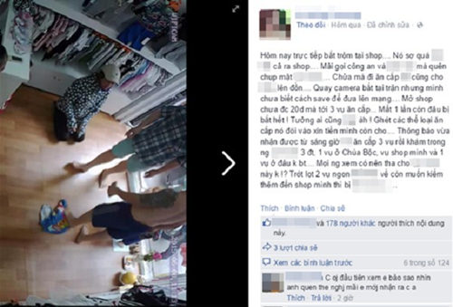 Một facebook-er chia sẻ: “Ôi xem mà ức. Hơn năm trước, em cũng bán quần áo trẻ con như thế này. Em đi lấy hàng thì nhờ bạn trông hộ 1 tí, nó bế con nhỏ nên cũng chỉ ngồi được 1 chỗ. Cũng 1 người đội mũ bảo hiểm đeo khẩu trang vào xem hàng xong hỏi lấy size rồi té rất nhanh. Kết quả là điện thoại để ngay trước mặt biến mất. Lúc định thần lại thì nó đi mất rồi”.