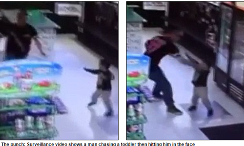 Camera giám sát tại một cửa hàng đã ghi lại được cảnh một người đàn ông đấm vào mặt cậu bé chừng 3 tuổi. Cảnh sát đã bắt giữ người đàn ông này vì tội hành hung trẻ em, theo Daily Mail.