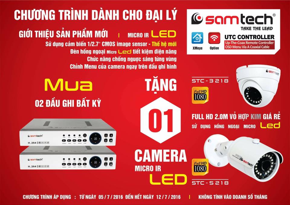 Từ ngày 05/7/2016 đến ngày 12/7/2016, khi mua 2 đầu ghi hình bất kỳ, quý đại lý sẽ được tặng 1 Camera Micro IR LED 2.0 MP STC-3218 hoặc Camera STC-5218.