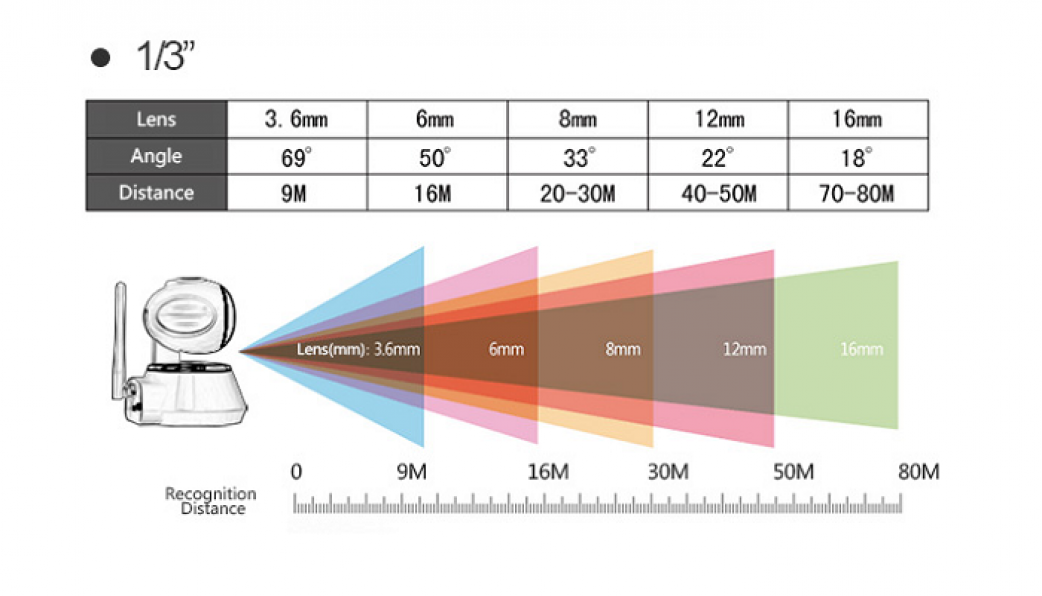 Cách lựa chọn tiêu cự camera: Tiêu cự camera càng nhỏ thì góc nhìn càng rộng nhưng lại chỉ quan sát được gần (ví dụ ống kính 2.8, 3.6mm…)