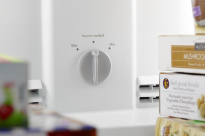 Bạn nên vặn nút (nằm ở ngăn mát) ở mức giữa hoặc hơn một chút nếu trữ nhiều thực phẩm.