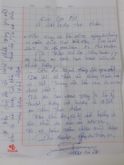Biên bản quản lý nhà hàng viết cam kết với khách hôm xảy ra sự việc