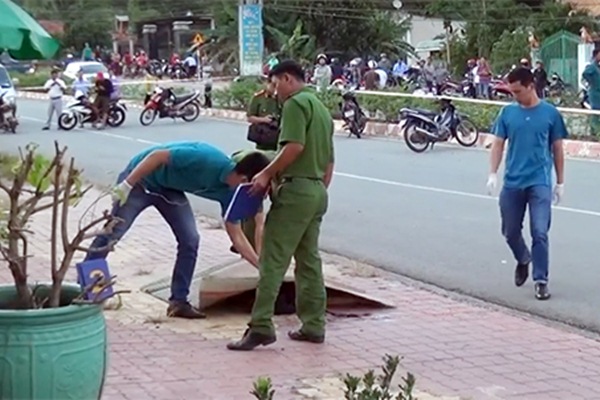 Người bị tình nghi là nam thanh niên mặc áo thun, quần jeans, áo khoác đen, mũ bảo hiểm màu trắng, đeo khẩu trang, đi xe máy màu xanh, mang biển số TP HCM, trên tay phải vẫn còn dính máu.