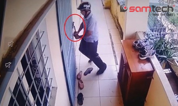 Sau một hồi quan sát, khi thấy không có ai ở bên trong nhà, hắn bèn rút đồ thủ sẵn trong người để phá khoá cửa, đột nhập vào bên trong lấy trộm đồ.