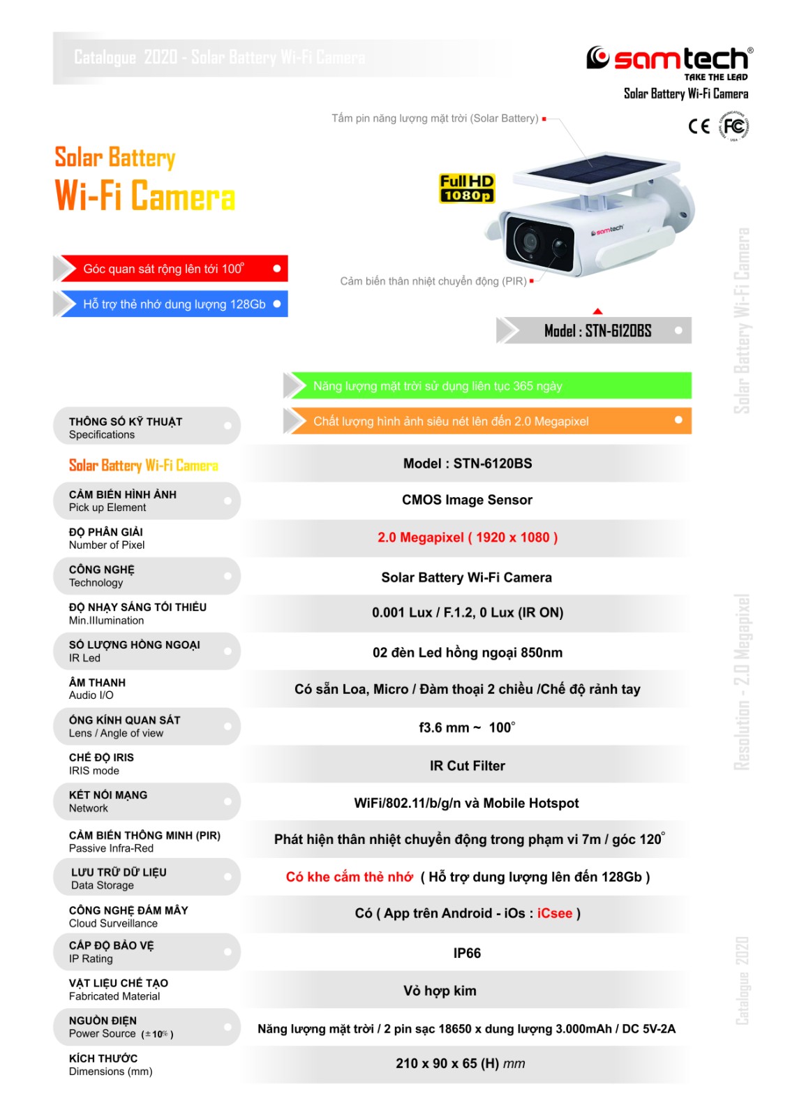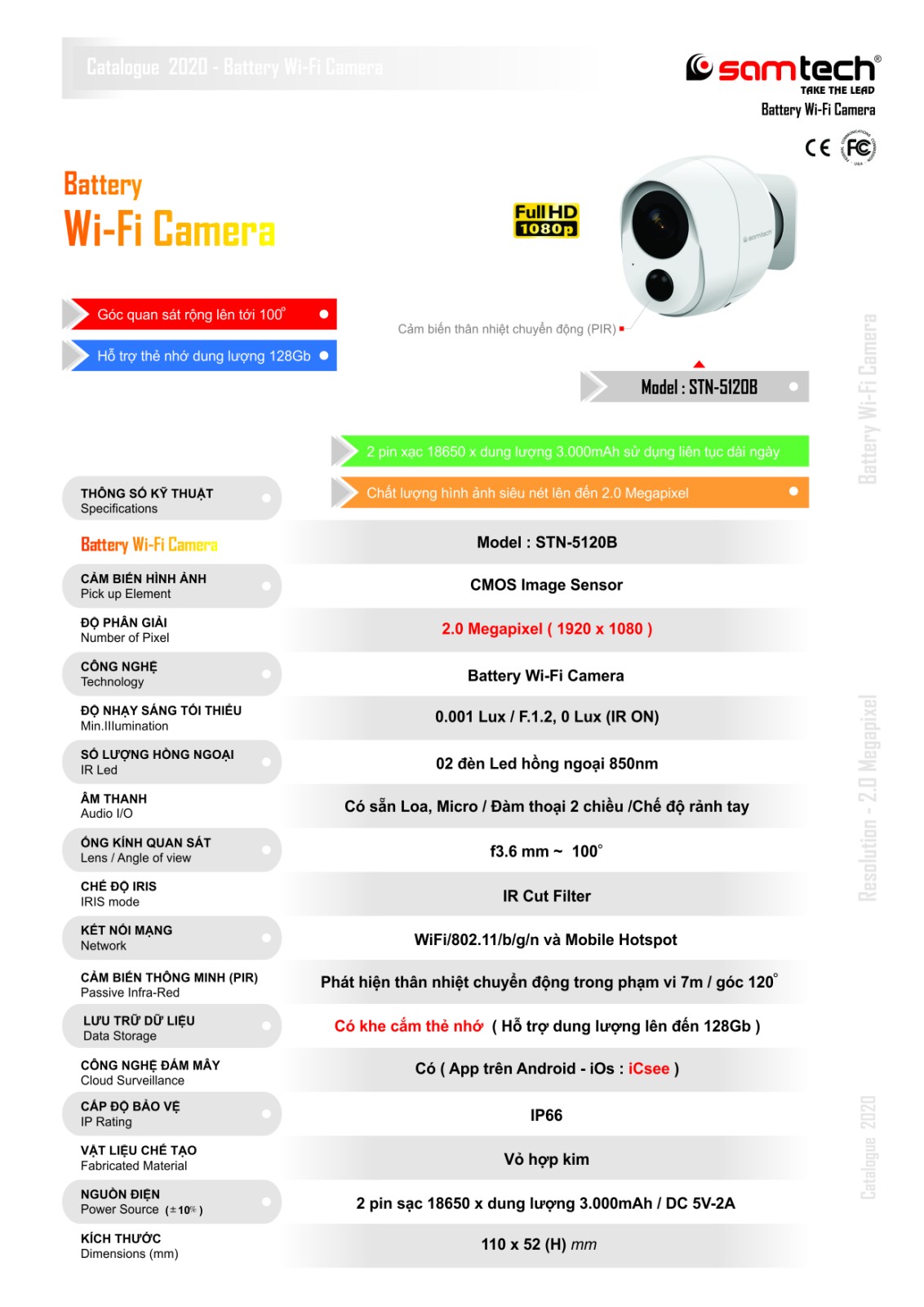 Samtech Việt Nam xin tư vấn hai dòng model STN5120B và STN6120BS là hai dòng camera dùng pin có thể lắp đặt nhanh chóng ở mọi lúc mọi nơi mà không cần kết nối dây mạng hay dây điện.