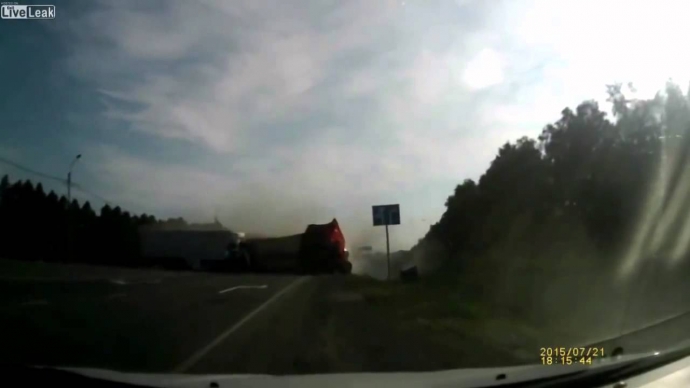 Thông tin đăng tải trên LiveLeak, mặc dù đường cao tốc ở mỗi chiều đều có hai làn đường cho phép xe vượt trong khuôn khổ, nhưng chiếc xe tải vẫn cố tình lao sang chiều đối diện để vượt. Bất ngờ một chiếc xe tải khác đi ngược chiều lao tới , khiến cả hai xe tải đâm vào nhau.