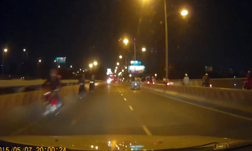 Mặc dù đã có dải phân cách giữa hai làn đường dành cho ô tô và xe máy, nhưng nhiều xe máy vẫn chạy vào làn đường của ôtô, thậm chí còn chạy ngược chiều, bật đèn pha, lạng lách, đánh võng gây nguy hiểm. Vụ việc mới vừa xảy ra trên cầu Bình Triệu 1 (TP HCM).