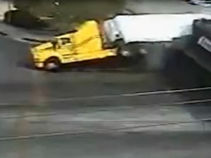 Theo LiveLeak, sự việc xảy ra tại một khu vực đường ngang gần các khu công nghiệp ở Mexico, may mắn là sau khi xảy ra tai nạn đoàn tàu chỉ đâm vào phần thân gần cuối đuôi xe nên tài xế đã thoát khỏi lưỡi hái tử thần.