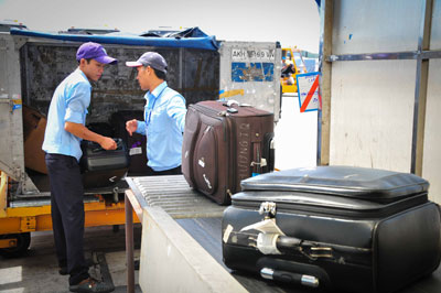 | Các nhân viên bốc xếp trả hành lý cho khách |