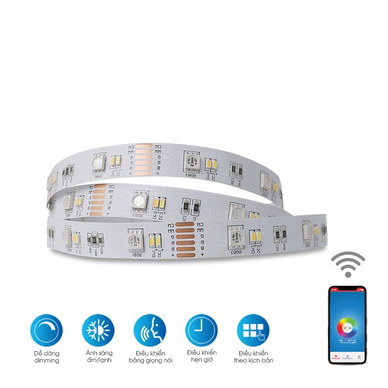 Đèn led dây 15W BD LD01RGBW.WF Rạng Đông sử dụng con chip thông minh nên có thể điều kiển ánh sáng bằng giọng nói. Ngoài ra, nó có một và cách chiếu sáng thông minh khác như điều khiển từ xa qua internet, điều khiển hẹn giờ, điều khiển theo kịch bản hoặc cảm ứng điện dung. Quả là rất thú vị phải không.