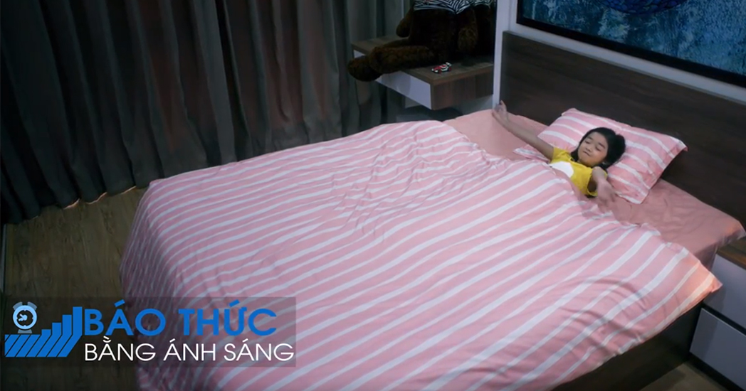Thay vì đặt báo thức bằng chuông, bạn hoàn toàn có thể hẹn giờ bật đèn để báo thức cho bé con bằng ánh sáng, giúp bé thoải mái hơn, không bị giật mình vào mỗi sáng.