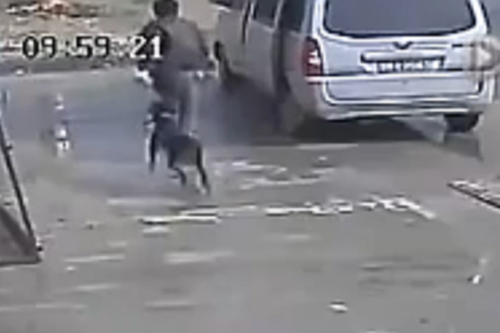 Camera tại khu vực lân cận đã quay lại cảnh người thanh niên đi ra từ ô tô rồi lôi con chó lên.