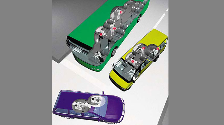 Khi bạn thường xuyên phải di chuyển bằng xe buýt, tốt nhất nên ngồi ở dãy ghế bên phải xe. Với chiều chuyển động giao thông như ở nước ta thì hướng xe chuyển động ngược chiều sẽ ở phía bên trái xe, nên những hành khách ngồi phía phải sẽ có nguy cơ chấn thương ít hơn.