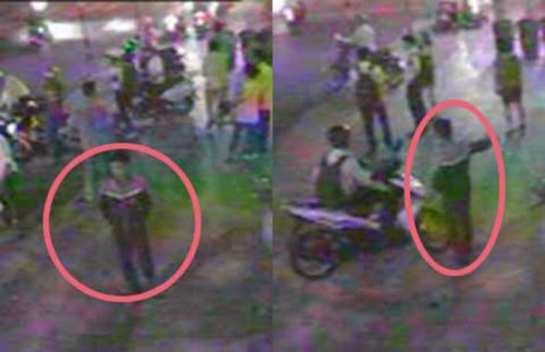 Người thanh niên nghi vấn (mặc áo khoác màu đen) trà trộn vào đám đông. Sau đó tiếp cận anh T., chỉ tay xuống hầm yêu cầu gửi xe, khi lấy được chìa khóa thì lên xe nổ máy bỏ chạy.
