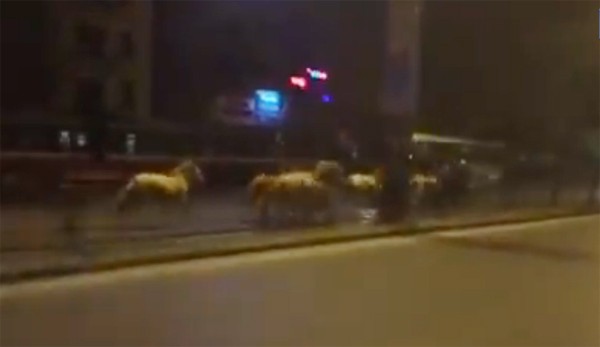 Một đoạn clip vừa xuất hiện trên mạng, ghi lại cảnh tượng hết sức lạ lẫm và thú vị đối với người dân Hà Nội. Clip được cho là quay vào tối ngày 2/3, giữa phố Giải Phóng xuất hiện một đàn ngựa gồm cả chục con trắng muốt... chạy ngược chiều. Sau một lúc mải miết chạy, đàn ngựa đã sang làn đúng chiều và cứ thế phi nước đại cả con phố Giải Phóng.
