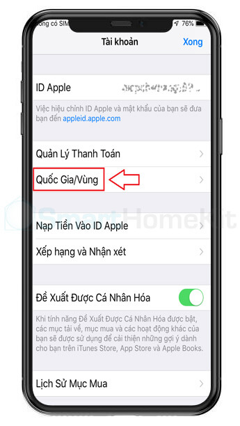 - Bước 2: Chọn Quốc gia/Vùng. Tiếp tục chọn Thay đổi quốc gia hoặc Vùng.