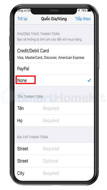 Với phần Phần thương thức thanh toán, người dùng chọn None.