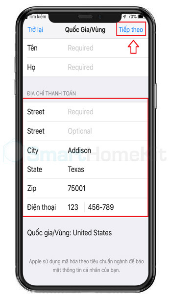 Với phần thông tin địa chỉ, người dùng điền giống với hình minh họa sau: