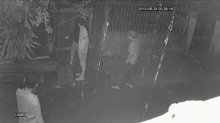 Đến 1h cùng ngày, một số người dân trong khu vực phát hiện có 2 thanh niên đi trên xe máy cứ lượn quanh khu vực xóm như dò la, nên họ nhìn ra thì thấy 4 thanh niên đang trộm đồ nhà ông Trà vác lên ô tô. Ngay lập tức, một người dân liền gọi điện cho ông Trà để thông báo.