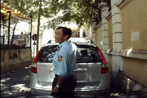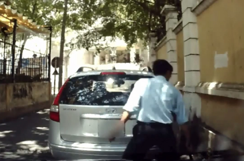 Lén lút bẻ cần gạt nước ôtô bị camera hành trình ghi hình