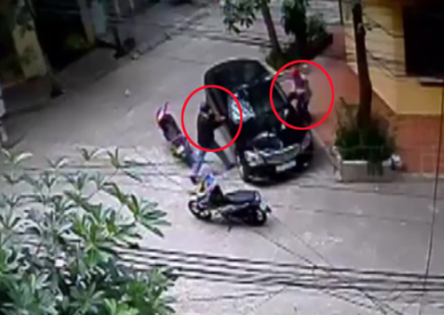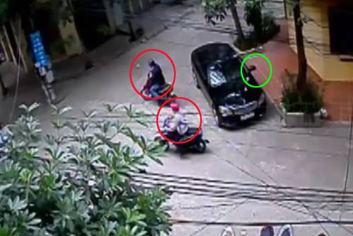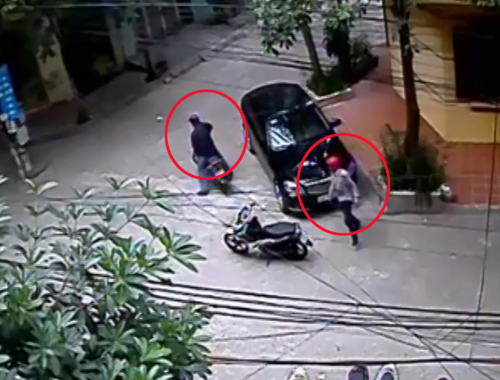 2 kẻ đạo chích đi xe máy lượn quanh chiếc ôtô đắt tiền đỗ bên đường thăm dò rồi lao vào ra tay...
