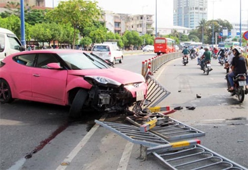 Khoảng 8h45’ phút ngày 5/4, nhiều người lưu thông trên đại lộ Võ Văn Kiệt hoảng hốt khi phát hiện chiếc xe ô tô màu hồng hiệu Huyndai BKS: 51A-223.89 lưu thông theo hướng từ quận 5 về quận 1 bất ngờ lao vào dải phân cách (đoạn gần khu vực cầu bộ hành số 9, phường 5, quận 5, TP HCM)
