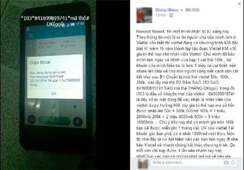 Kẻ xấu lợi dụng cú pháp nạp thẻ cho thuê bao khác do Viettel cung cấp để lừa người dùng cả tin
