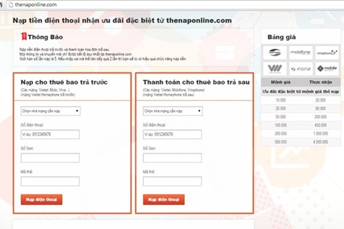 - Chỉ thực hiện nạp thẻ trên trang chính thống của nhà mạng