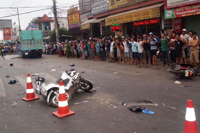 Vụ tai nạn chết người tại giao lộ đang chờ cơ quan chức năng giải quyết thì chiếc ôtô tải từ phía sau lao đến, tông vào nhóm người dừng đèn đỏ tại đây, kéo lê xe máy của nạn nhân vụ tai nạn trước.