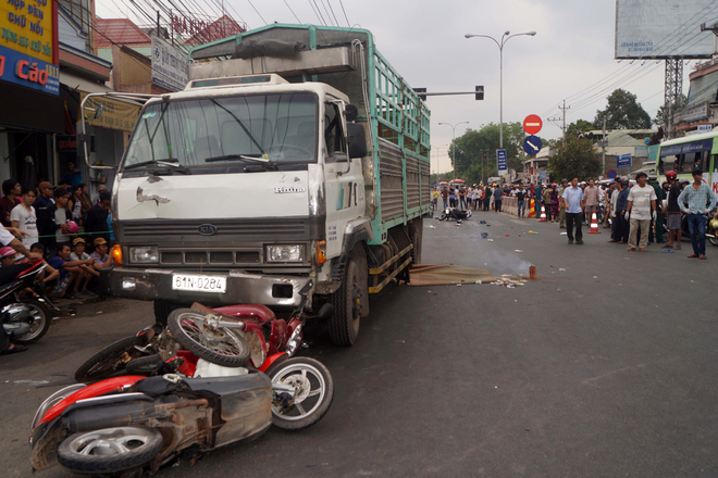 Gần nửa tiếng sau, ít nhất 5 xe máy đang dừng đèn đỏ tại giao lộ này thì ôtô tải từ phía sau lao đến, húc văng. Hàng chục người đứng xem vụ tai nạn xe buýt kịp bỏ chạy. “Ôtô này tông mạnh vào hai xe máy, ba xe khác bị dồn dưới gầm xe. Xe máy của nạn nhân vụ tai nạn trước cũng bị xe tải kéo lê trên đường”, nhân chứng tên Long cho biết.