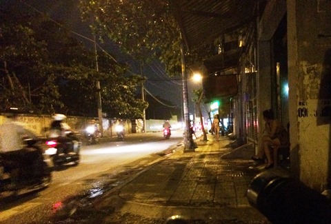 Gái mại dâm ngồi đợi khách tại "phố đèn đỏ" Tân Sơn, P.12, Q.Gò Vấp. Ảnh: Phan Cường.