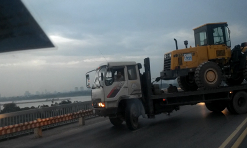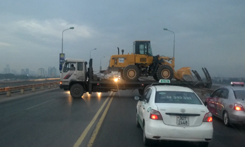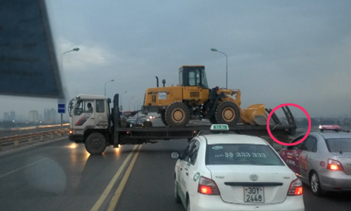 Quay đầu trên cầu Thăng Long xe container bị camera ghi lại