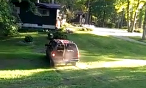 Anh chàng cầm điện thoại di động để quay phim hét lớn "Lùi lại, lùi nhanh..." rồi "Lái đi". Tài xế thực hiện nghiêm túc mệnh lệnh và đạt kết quả như ý kèm theo phần khuyến mãi ngoài ý muốn.