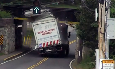 Dường như tín hiệu "Khoảng cách gầm thấp" tại cầu East Street Railroad ở Westwood, bang Massachusetts vẫn chưa đủ rõ ràng khi có 4 chiếc xe tải gặp nạn tương tự từ đầu năm.